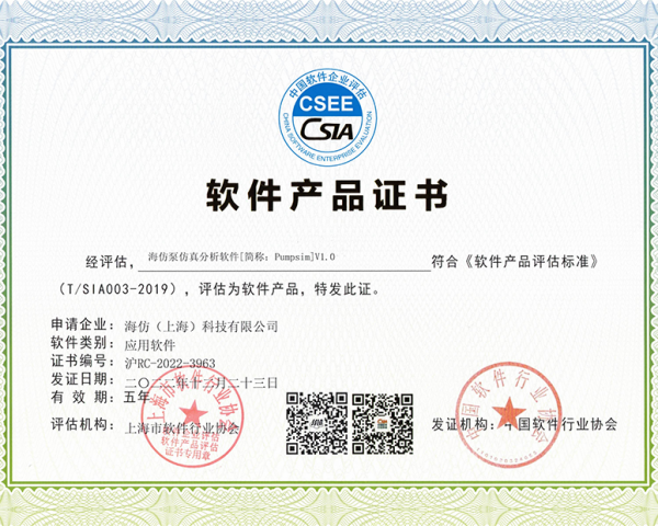 软件产品证书-海仿泵仿真分析软件