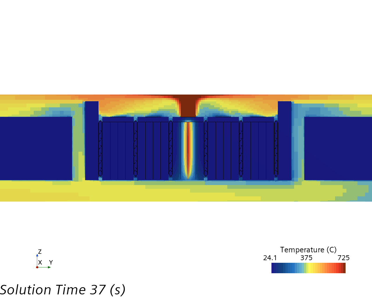 建立锂电池热失控规律的探究和消防系统的设计、实验成本高、危险性大、耗时长的困难,借助仿真手段,能有效减少实验次数,降低研发成本,同时通过仿真手段优化系统结构设计,减少产品发生热失控等火灾隐患。