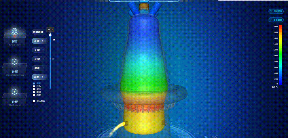 1. 仿真分析孪生体层:耦合计算流体力学与热场模型,开发流场、热-流动耦合快速仿真模块,通过轴对称模型简化与伪瞬态处理提升计算效率;