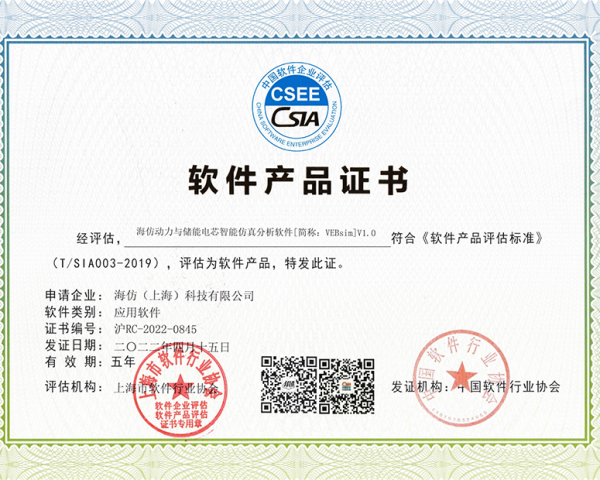 软件产品证书-海仿动力与储能电芯智能仿真分析软件